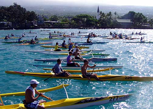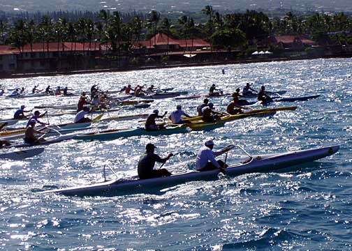Outrigger canoe racers waiting for the start of the race